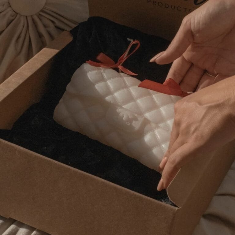 Κερί χειροποίητο σε σχήμα τσάντας Chanel, σχεδιασμένο με εκλεπτυσμένες λεπτομέρειες που θυμίζουν την πολυτέλεια του θρυλικού οίκου μόδας! Ιδανικό για διακόσμηση και επίσης είναι μια ωραία πρόταση για δώρο! Προσθέτει μια πινελιά πολυτελείας στον χώρο σας!